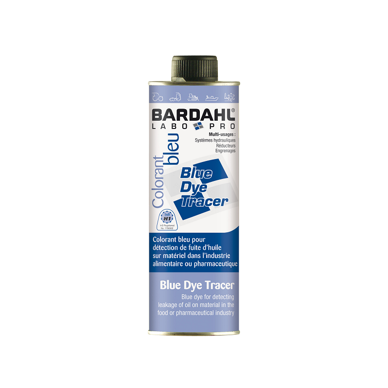 Plava boja za maziva u prehrambenoj industriji. Boja koja može locirati curenje industrijskih ulja na hidrauličkim sustavima, reduktorima, zupčanicima.Blue DYE Tracer raspršuje plavi pigment u visoko čistom mineralnom ulju.